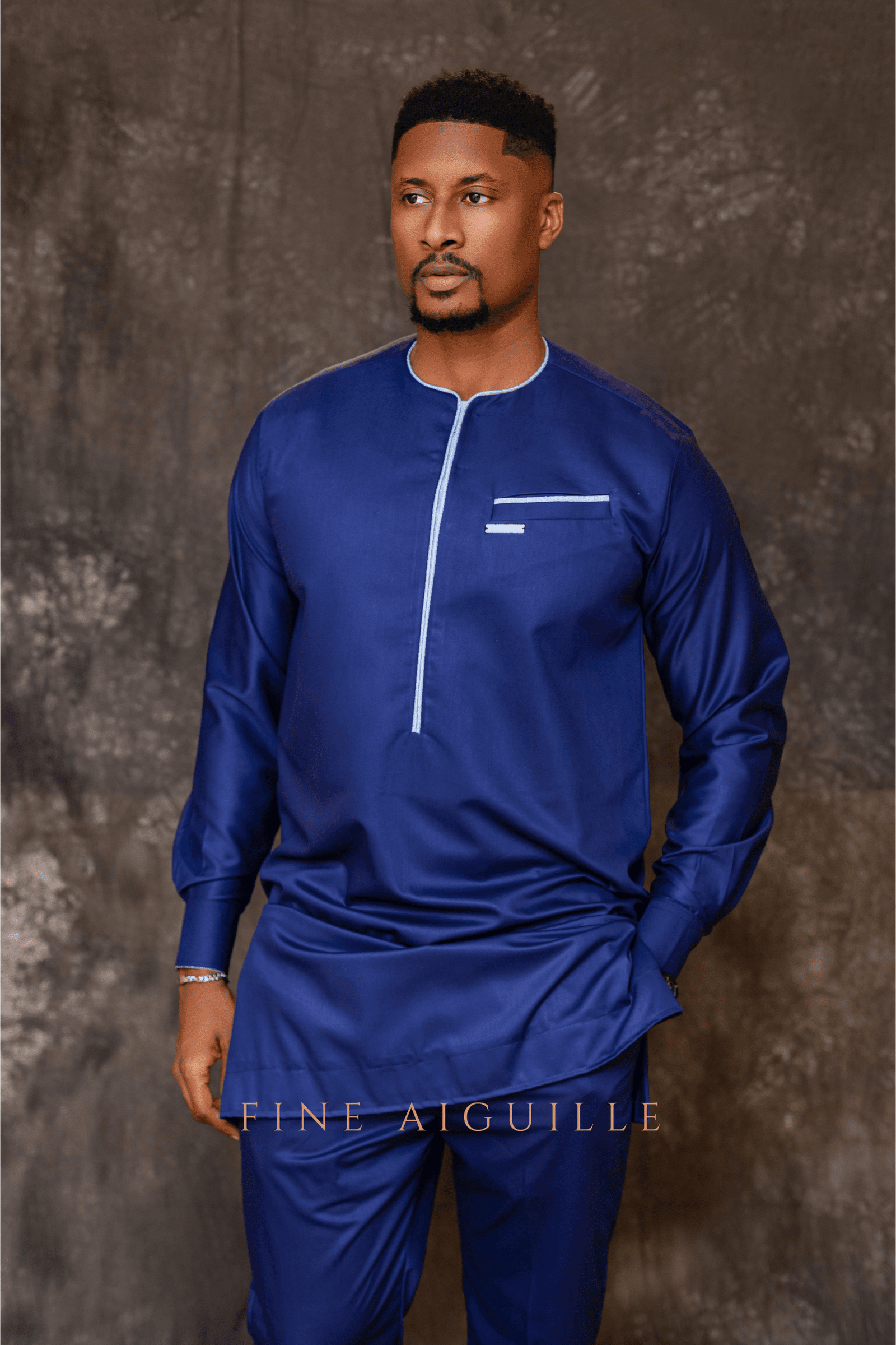 Babacar – une création qui célèbre l’héritage et l’élégance masculine africaine, alliant tradition et modernité dans un bleu marine intemporel.